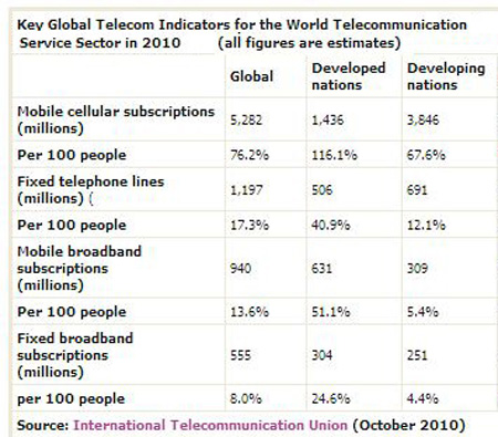 fixed broadband in developing countries remains prohibitively expensive. (all figures from the ITU estimates, October 2010)).